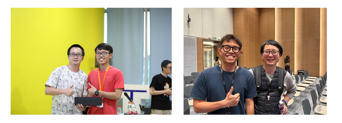 最后是我一直在关注的 Ciyou,去年在拿着自己的 visionOS app 参展,今年参加了圆桌讨论,明年能够上台分享一点也不觉得意外。印象中他已经是一些 visionOS 或者空间计算相关赛事的评委了,很是佩服 Ciyou 的精力分配。虽然我自认为自己的精力和时间管理还算不错,但人还是只能和自己比,和别人比的话会很痛苦。我们 24 年在杭州的一次移动应用创新赛的字节训练营的分享活动上结识,那时候我就诧异自己怎么才发现 Ciyou 这个人才,懊悔怎么没能早些认识,这次也抓住机会在 Ciyou 展台空闲的时候合了影。感谢自己能够遇到这么优秀的同辈人,让自己有了一面镜子自省,期待 Ciyou 未来大有可为!