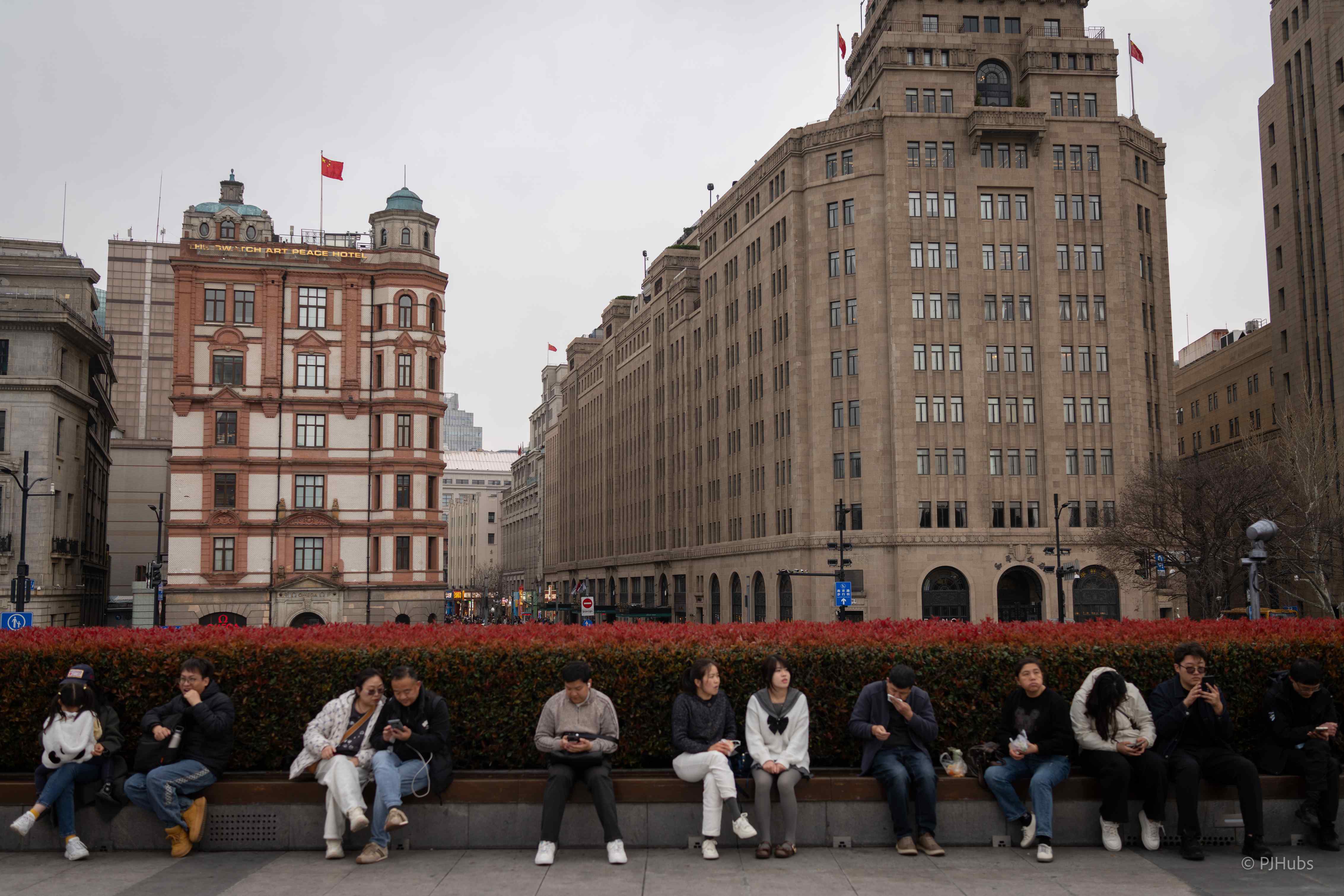 豫园其实人少还挺不错的,明代建成后作为「东南名园冠」几百年来承受了很多历史的重量,尤其是清朝末期以来经受了多次重建维护,吸引了非常多的外国游客。但这人也太多了些,而且里面充斥着大量的蟹黄汤包、臭豆腐、烤鱿鱼等小吃摊,实在是难以忍受这种味道,也就快速走过。