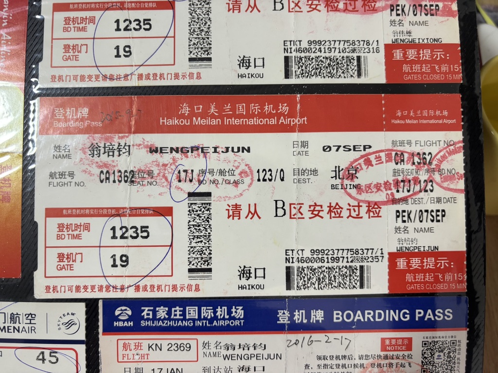 十年就这么过去了,刚好这些年所有的票据贴满一整本,没有一丝缝隙。那是我第一次坐飞机离开小岛,爹爹打电话订的机票,没有提前选座。我还很羞涩,登机后不敢跟坐在窗边的叔叔沟通换座位,爹爹鼓励后才说出,“你好叔叔,我第一次坐飞机,想坐窗边看看,我们能换下座位吗?”叔叔笑着说“好嘞!”,坐在窗边的我很开心的看了一路云朵,去往目的地——北京。