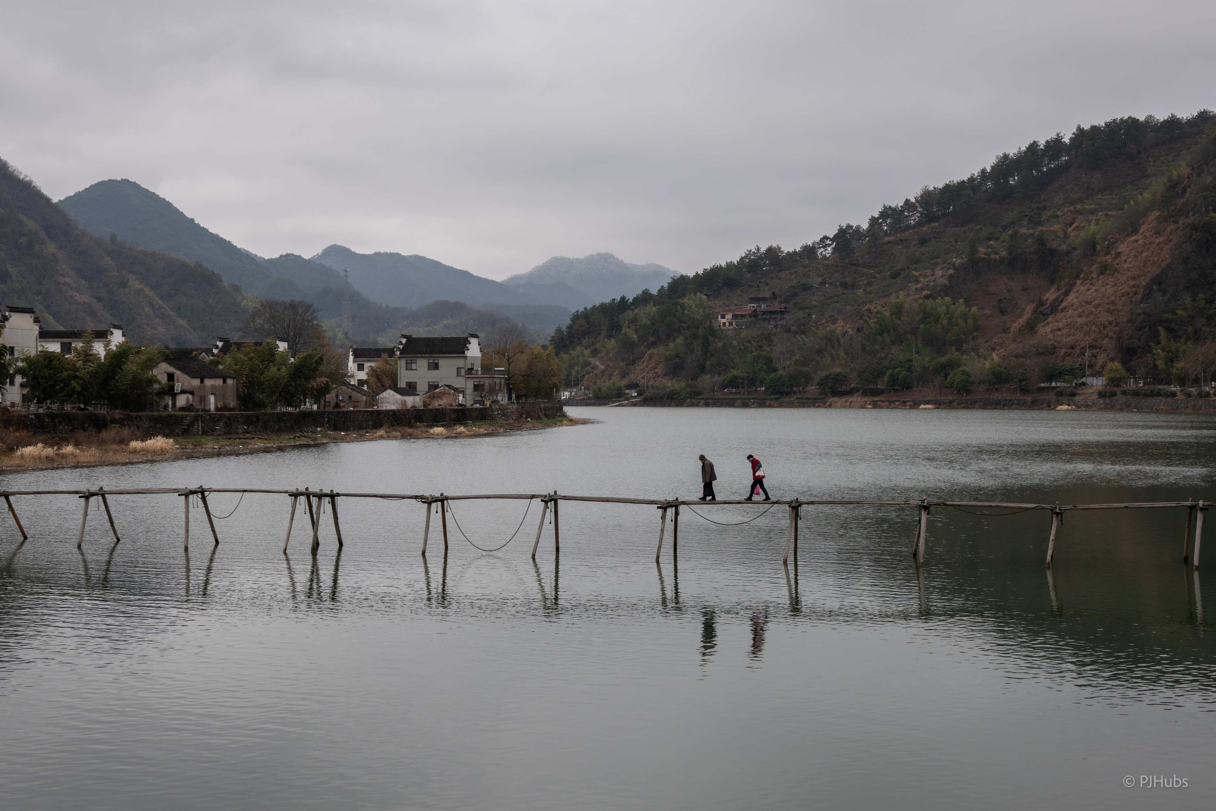 当我骑着租来的电动车去往绩溪龙川村的山路上,满脑子都在想着把身上的羽绒服拉链再拉上一些,再裹紧一些,心里抱怨着怎么不包个车,非得顶着大冷天骑个电动车折腾自己时,突然抬头就看见了远处山峰飘着白色的雪,像是冰激凌顶上的糖果碎花一样点缀着,看着看着我就笑了出来,知道这一趟肉体上的折磨,值得!